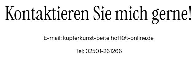 Ich freue mich über Ihr Interesse an meinen handgefertigten Kupferarbeiten. Meine Unikate umfassen Kupferbriefkästen, Kupferdachfiguren, Lampen, Hausnummern, Brunnen und Figuren.